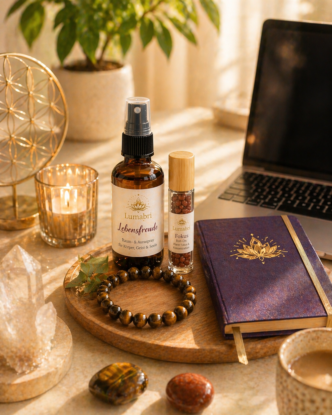 Damit du auch im Arbeitsalltag fokussiert und energetisch geschützt bist, erhältst du dein Begleit-Kit nach Hause: